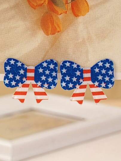 一对简约红白蓝条纹蝴蝶结星星设计耳环,适合日常佩戴,也是7月4日派对和礼物的绝佳选择。