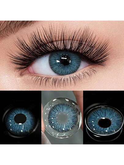 1副彩色隐形眼镜,年抛型流行大直径隐形眼镜,含水量40%,可放大眼睛,眼妆美容万圣节服装角色扮演 - 藍色 - 查看 1