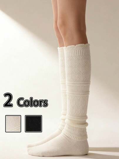 1双复古镂空白色绒面羊毛袜,女士冬季羊毛小腿袜,保暖蕾丝长袜,适合日常穿着