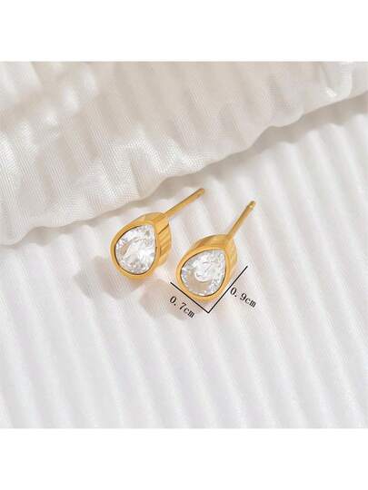 1對不銹鋼時尚小巧水滴型耳環,適合女性日常佩戴 - 水滴型 - 查看 1
