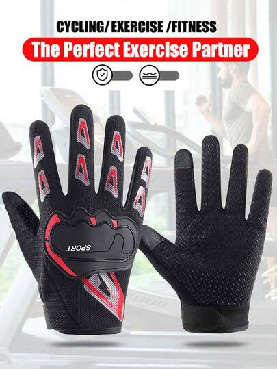 1 双户外运动全指手套,男士透气耐磨防护训练战术手套,防滑徒步骑行手套,户外骑行运动防护全指手套,男士骑行全指健身摩托车骑行手套 - 彩色 - 查看 1