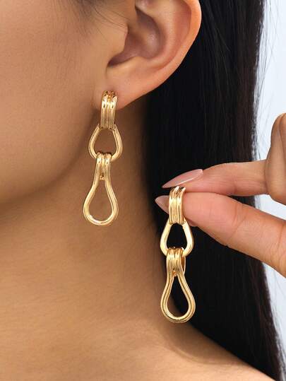 1对女士个性化金色几何吊坠耳环 - 金黃色 - 查看 1