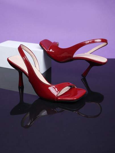 1双红色加大码时尚高跟凉鞋,适合青少年女孩,闪亮镜面PU弹力带方头细高跟优雅坡跟罗马凉鞋,适合日常休闲、派对、旅行、2025春夏款(此款尺码偏大一码) - 紅色 - 查看 1