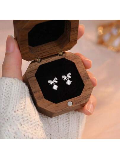 1 对 S925 纯银蝴蝶结锆石吊坠耳环,浪漫甜蜜的珠宝礼物,适合女性、姐妹、女朋友、生日 - 蝴蝶結 - 查看 1