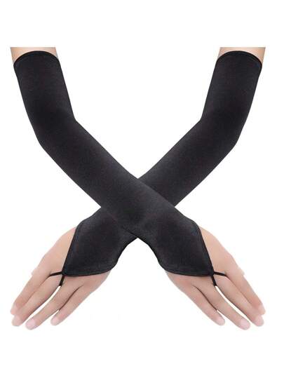1 双纯色休闲复古优雅宫廷风格无指长手套,适合派对、约会之夜、婚礼、生日派对、表演、角色扮演、晚会 - A - 查看 10