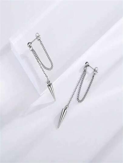 1 对男士不锈钢锥形吊坠朋克针形耳环,防过敏 - 銀色 - 查看 1