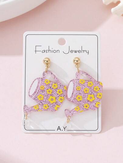 一对夏季度假可爱浇水壶造型女士时尚耳环,节日派对完美装饰