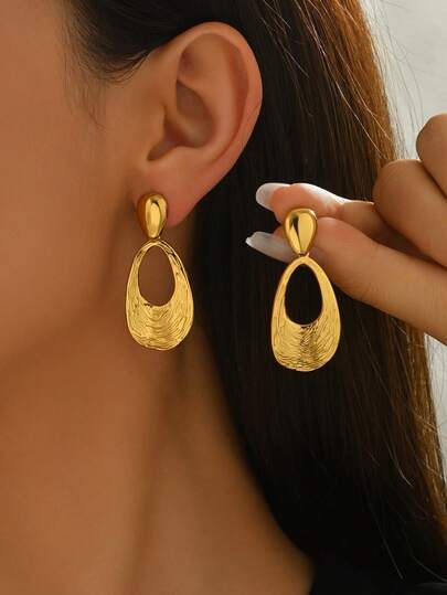 1 对独特的不对称纹理设计耳环,为您的外观增添优雅和艺术气息,适合日常佩戴或特殊场合 - 金黃色 - 查看 12