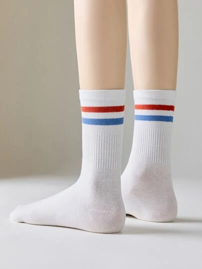 1 双女式学院风高帮中筒运动袜,秋季袜子