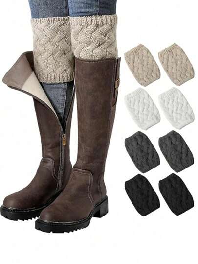 1 双女式针织靴套、冬季保暖靴套、钩针针织靴腿套、短腿保暖靴腿套、秋冬手工圣诞靴套、流行粗条纹花卉针织短腿套 - 彩色 - 查看 10