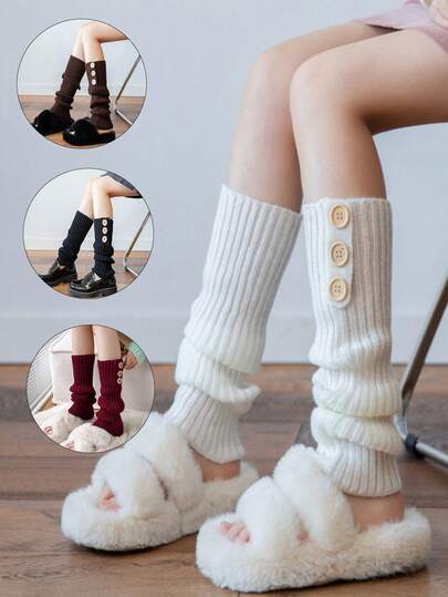 1双女士过膝长筒袜,超大针织袜套,五角星设计,Y2K休闲时尚亚文化,喇叭形筒袜,纯色加厚连裤袜 - 彩色 - 查看 37