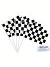 SHEIN 8/10/15/20 件 21*14 厘米黑白格子旗赛车旗配 30 厘米长塑料棒赛车手持指挥棒,赛车派对装饰礼物,赛车派对,汽车主题生日派对,家居装饰,节日装饰