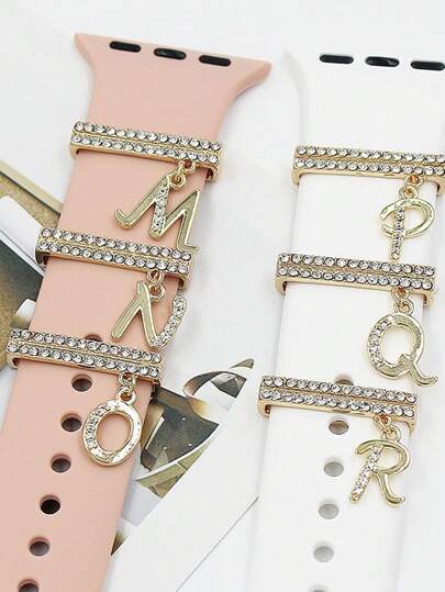 1入組38mm蘋果手錶矽膠錶帶,帶有26個字母裝飾錶帶 - 金色 - 查看 1