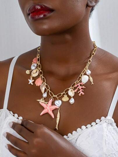 1件波西米亚风海星吊坠项链,适合夏季海滩度假 - 彩色 - 查看 1