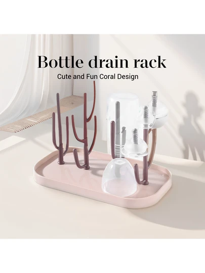 1入組嬰兒奶瓶收納盒,帶防塵蓋和排水架,可當水杯架,可用於嬰兒奶瓶的乾燥和收納架 - 粉色 - 查看 1