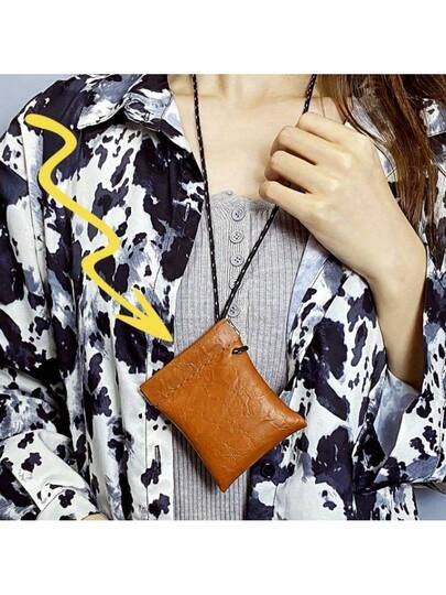 1入迷你掛繩存儲袋,純色包,經典紋理手提袋 - 棕色 - 查看 6