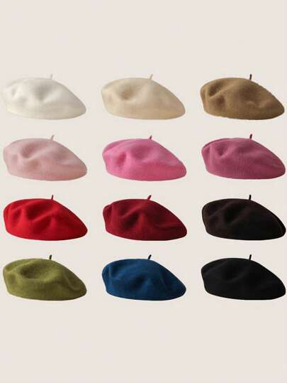 1件新款秋冬保暖贝雷帽女文艺复古百搭画家帽英伦纯色毡帽适合日常用 - 貝雷帽 - 查看 1