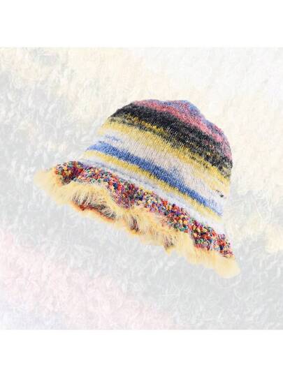 1 Pc Rainbow Oil Painting Gradient Knitted Woolen Hat With Warm Plush Fisherman'S Hat