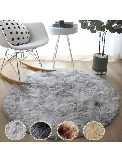 1 件圆形扎染浅灰色蓬松地毯,沙发卧室床边防滑地垫,柔软地毯大号现代客厅毛绒地垫,房间装饰 - 多色 - 查看 24