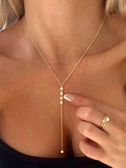1 件性感钻石镶嵌流苏金色 Y 形项链,适合女士,精致闪亮钻石镶嵌长款金项链,适合女孩,时尚优雅的女士派对珠宝,适合女性全年佩戴 - 金色 - 查看 1