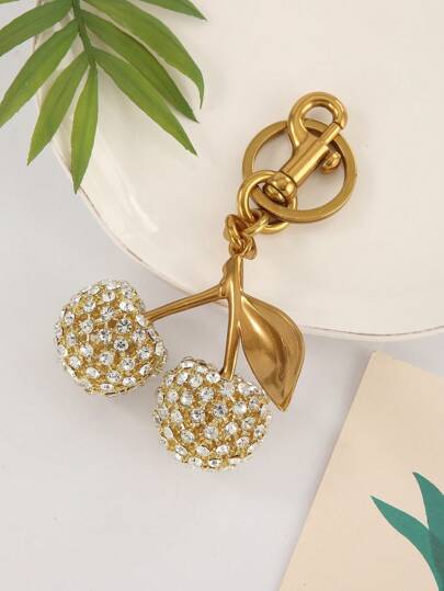1个闪亮水钻樱桃装饰包包挂件钥匙扣 - 樱桃、苹果、梨、草莓挂件,汽车配件,钥匙圈,女士礼物,圣诞节,情人节 - 彩色 - 查看 1