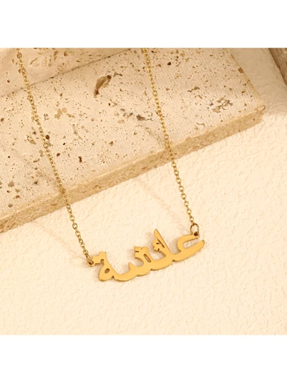 YUZENG 1件不锈钢时尚吊坠项链,心形标语,适合日常佩戴 - 金黃色 - 查看 1