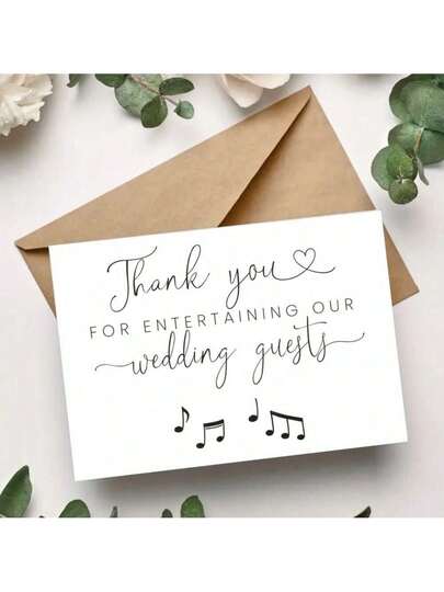 1 Pc Wedding DJ Appreciation Card With Thank You For Entertaining Our Wedding Guests Message Elegant Musical Notes Design Perfect For Wedding Receptions DJ Services As Thank You Card Greeting Card With Envelope