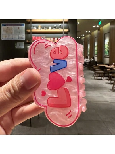 1入組女性粉色愛心雲字母可愛情人節髮夾 - 粉色 - 查看 1