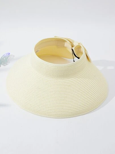 1 件女士糖果色蝴蝶结宽边可折叠太阳帽,时尚沙滩度假休闲户外骑行帽,适合夏季 - 米色 - 查看 1