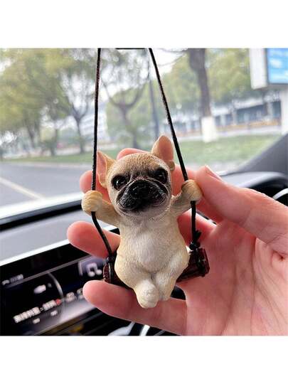 1 件可爱汽车吊饰挂钩汽车装饰后视镜斗牛犬 - 彩色 - 查看 1
