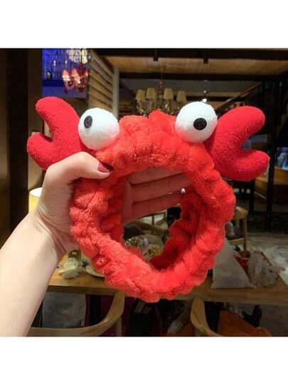 1 Pcs Cute Korean Crab Shaped Headband With Fluffy Fur Bow - Influencer-Favorite Aesthetic Hair Accessory, Premium Look & Skin-Friendly For Women & Girls, Suitable For Face Washing, Skincare, Makeup & Bath, Korean Style Daily Wear, Adorable Animal Hair Accessory For Hair Styling & Gifts