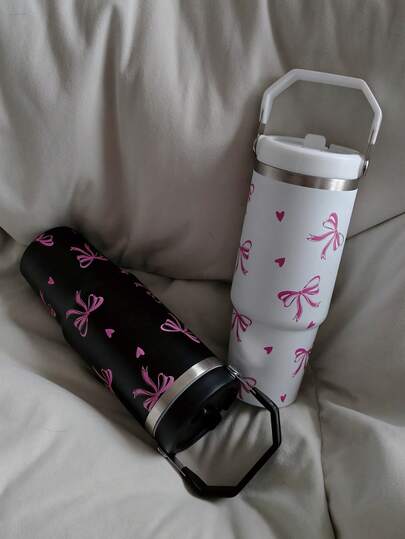 1 Piece 30盎司大号蝴蝶结心形不锈钢水瓶旅行杯吸管真空杯便携大容量旅行杯运动水杯学生水杯车载水杯长效保温 - 彩色 - 查看 9