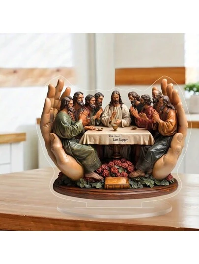1 件,亚克力“最后的晚餐”耶稣与门徒桌面摆件带底座,2D 多功能装饰牌,适合家庭和办公室,适合情人节、周年纪念、新年、复活节装饰摆件 - 彩色 - 查看 1