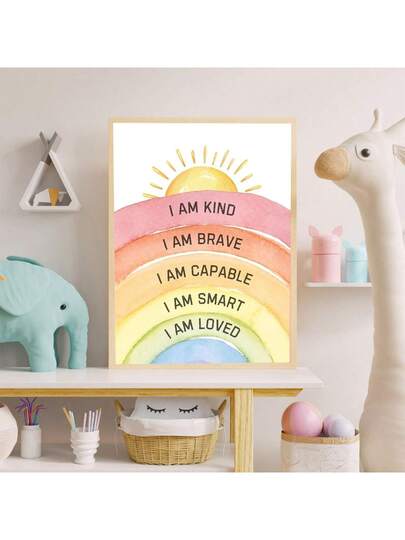 1 幅带框帆布画、波西米亚风格墙壁艺术画、育儿室墙壁艺术、育儿室装饰、墙壁装饰海报、励志印刷墙壁艺术、励志名言水彩文字、壁挂、直接悬挂 - 彩色 - 查看 1