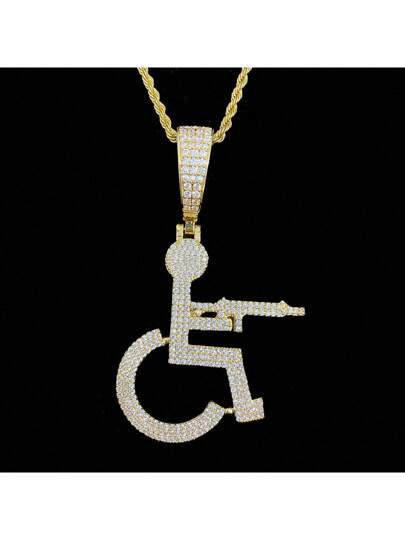 1 件冰冷輪槍項鍊吊墜男士鍍方晶鋯石銅嘻哈首飾 - 金色 - 查看 1