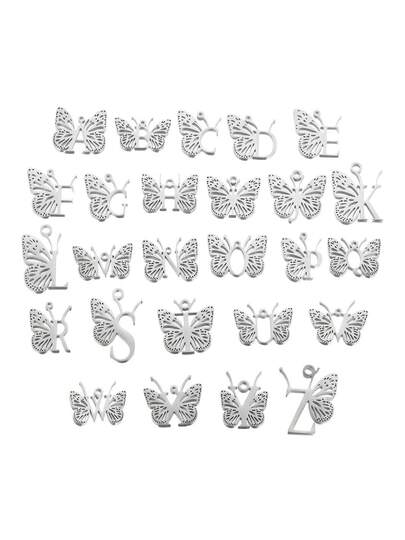 1件/單元不鏽鋼蝴蝶式字母a-z字母吊墜手鍊吊墜diy珠寶配件手鍊吊饰 - 銀色 - 查看 1