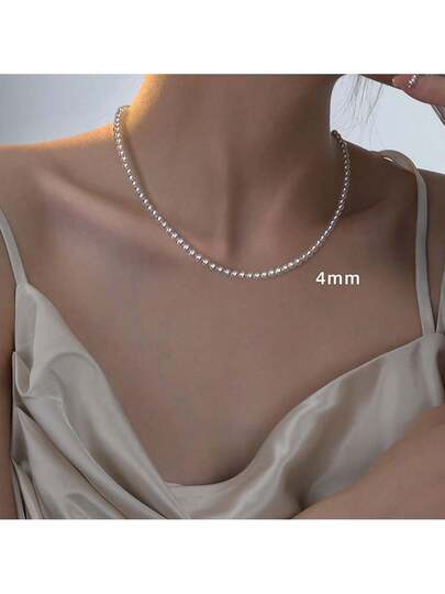 1 件法式宽松仿珍珠项链,适合女士,小巧优雅,百搭锁骨链 - 白色 - 查看 4