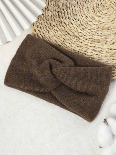 1件女秋冬純色雙層加厚針織髮帶復古酷街頭寬邊十字毛線頭帶運動外出按髮箍保暖透氣時尚簡約約束頭帶適合日常使用 - 咖啡 - 查看 1