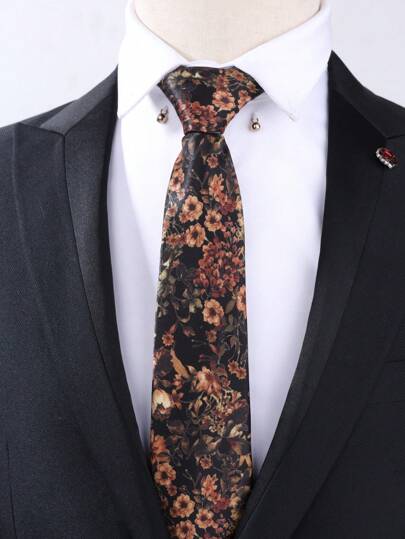 男士领带,复古英式优雅花卉设计,适合正式、商务和休闲穿着 - 彩色 - 查看 1