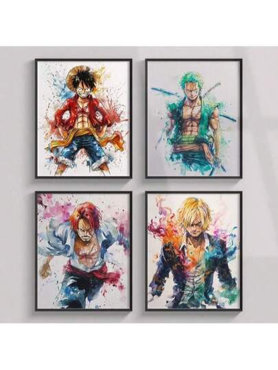 1幅水彩卡通人物艺术画,索隆,山治,动漫海报,电子游戏主题墙饰,拼贴画,漫画风格,无框 - 彩色 - 查看 16