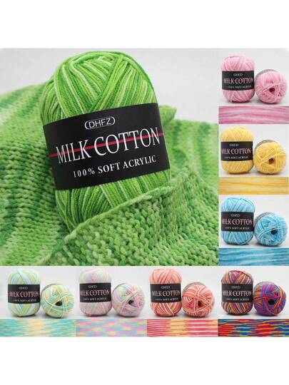 1卷50克三层柔软牛奶纱,多色渐变柔软雪尼尔纱,适用于DIY围巾、毛毯、玩偶等针织项目(外包装款式随机) - 彩色 - 查看 1