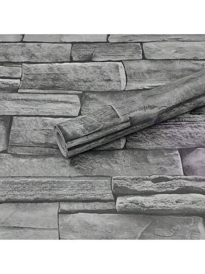 1 卷灰砖壁纸,即撕即贴,石材壁纸,自粘式可移除,PVC 复古砖纹壁纸,仿纹理壁纸,家居装饰,卧室,浴室,厨房,办公室,客厅,家具,房间装饰壁纸,墙贴,墙面装饰 - 灰色 - 查看 1