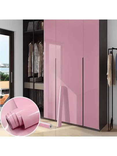 1 卷 1m/3m/5m 粉色光泽接触壁纸,自粘式即用型可移除墙贴,儿童房公主风格装饰壁纸,橱柜衣柜梳妆台翻新装饰 15.74X397.4 英寸墙纸房间装饰墙面装饰 - 粉色 - 查看 5