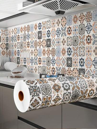 1卷PVC壁纸,欧式自粘壁纸,防水,耐热,易清洁,厨房炉灶防油贴纸,适用于浴室,厨房,玄关,客厅 - 彩色 - 查看 1