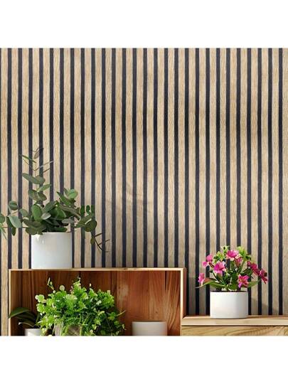 1 卷复古棕色条纹木纹防水自粘墙纸,适用于家居装饰、厨柜、桌子、椅子、房间背景、装修、砖木风格、可拆卸、无缝图案匹配 - 卡其色 - 查看 4