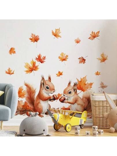 1 套秋季枫叶和松鼠窗贴,适用于感恩节、房间、家居装饰、窗户、秋季派对、门、店面、家庭聚会、节日庆祝、氛围装饰、主题派对,可重复使用 - 彩色 - 查看 1