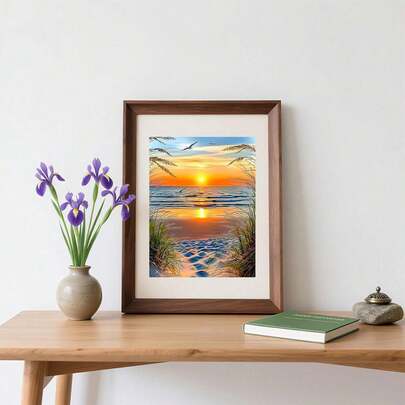 一套钻石画套装,DIY风景系列海滩日落5D钻石画套装(适合成人),海岸芦苇钻石画套装(适合初学者),DIY全圆钻钻石画工具,搭配宝石工艺品家居墙面装饰,尺寸11.81x15.75英寸,不含画框 - 彩色 - 查看 1
