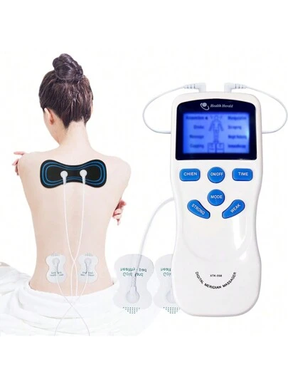 1 套数字经络脉冲按摩器 EMS TENS 肌肉刺激器 15 种强度电疗设备全身放松带替换电极垫 - 彩色 - 查看 1