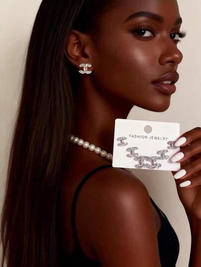 一套优雅时尚的女士首饰,925银针白色CC花朵耳环套装,适合作为情人节派对礼物