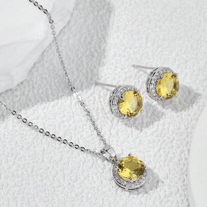 一套时尚优雅的立方氧化锆首饰套装,适合女性约会、派对和日常佩戴。 - 黃色 - 查看 1